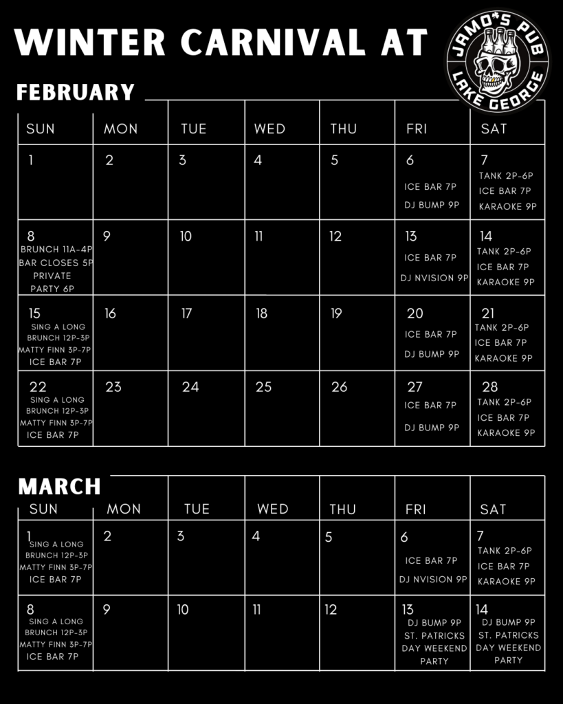 Every Sunday during Winter Carnival at Jamo’s Pub!